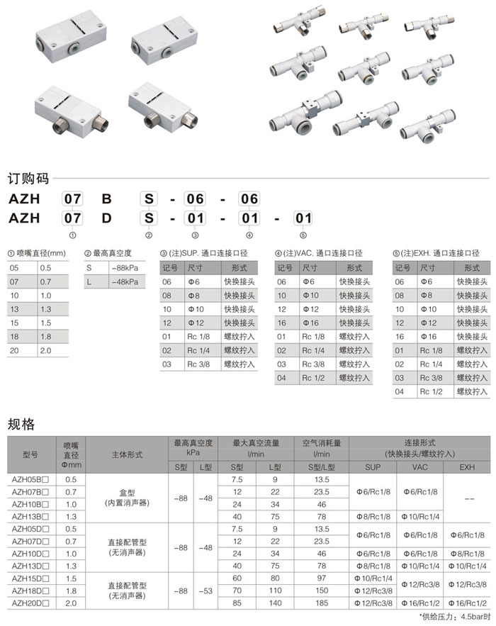 AZH07B-06-06,AZH系列真空发生器,真空设备,真空元件