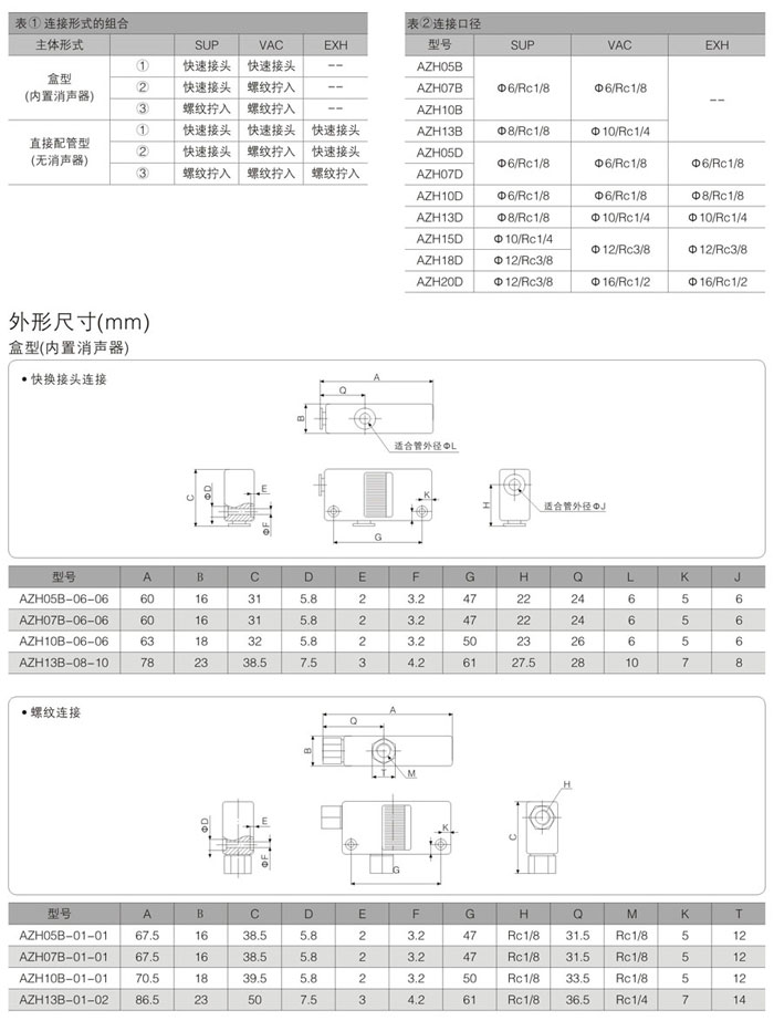 AZH10B-06-06,AZH系列真空发生器,真空设备,真空元件